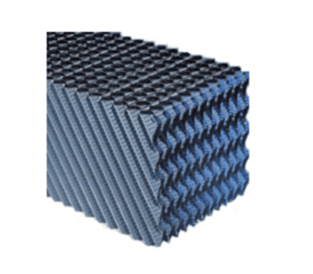 The fill within the cooling tower is the critical thermal component. In wet cooling towers or hybrid towers it is the medium over which the hot water is distributed as it is being cooled. It’s primary function is to provide an environment for efficient heat transfer. Fill is primarily various shapes of extruded PVC, and is still used for projects with major fouling concerns. Significant improvements in evaporative heat transfer efficiency were realized with the invention of film fills. Most new applications today use the high efficiency film fill, but in some cases it is necessary to continue to use splash fill.